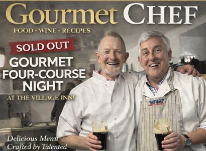 We want our local pub, The Village Inn, to thrive. A pub closes in England every day, a shocking statistic. If our local goes, that’s the focal point of the village gone. We got the support of Adam, the pub landlord, and set up a volunteer group – four retired guys and five women with attitude. The flowers in the pub are now changed every Friday which gives the place a lift. Adam and his team set out a restaurant -style room at the back of the pub and each table is laid out to a high-dining standard. For a Saturday evening in March we advertised a four-course Gourmet meal. It sold out in a few days. David did three nibbles, the gourmet starter and the main course of pheasant. Maurice was David’s commis chef and he also focused on a full array of vegetarian dishes and an olive oil chocolate cake for dessert. We’d an anxious dry run for friends earlier in the week which gave us confidence. We managed the kitchen professionally on the evening, aimed high to a Master Chef standard. The guests loved it, agreed it was a big success, offered encouraging feedback, and it was very profitable for the pub. During this year we have plans for more four-course gourmet meals. We’re not trying to change the world but with support from villagers, guests and volunteers we’ll do what we can for our pub. When the gourmet meal was finished, we left a spotless kitchen and had a pint of Guinness on the house. There’s only one poem for that, with a nod to the poet, Flann O’Brien. When things go wrong and then go right For you’ve done the best you can, When life looks sweet at close of night A pint of plain is your only man. When service is done and the kitchen’s clean And your faces are pale and wan When punters say “it was a fabulous meal” A pint of plain is your only man.